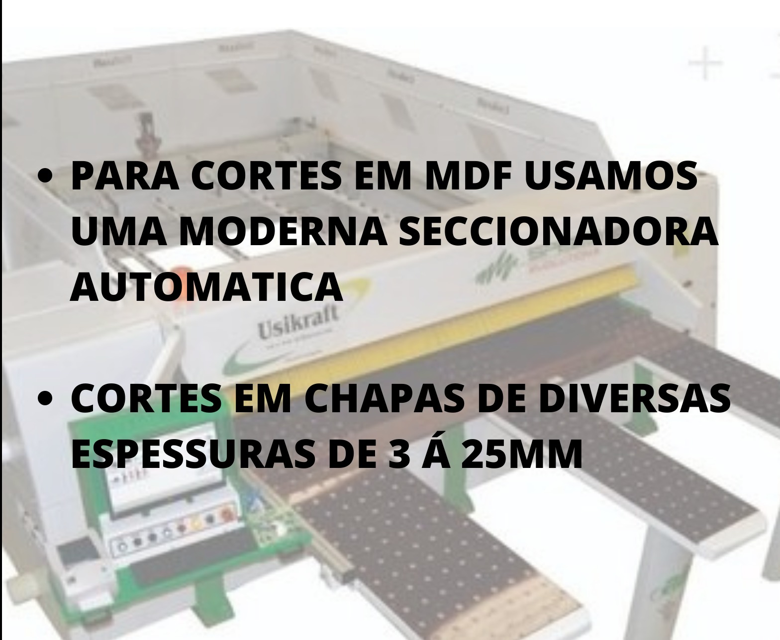Os serviços que oferecemos são: cortes retos de chapas, aplicação de fita de bordo, engrosso de chapas, Furação para dobradiças caneco, canal e rebaixos.